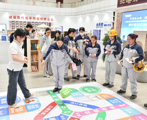 走进广西北港新材料有限公司新时代文明实践点,“北港新材料书院”的书香气息扑面而来。职工们或驻足翻阅书籍,或低声交流心得。环顾四周,企业荣誉展示区的不锈钢产品在灯光下熠熠生辉;文明创建展示墙上,社会主义核心价值观标语与“志愿之家”的活动照片洋溢着文明之风,共同勾勒出一幅文明与产业交融的生动图景。