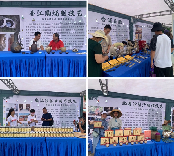非遗项目展区展示展销了极具北海地方特色的北海贝雕、合浦角雕、北海老船木家具制作技艺等,舞台上有戏曲行当《粉墨登台谱春秋》、曲艺《老杨公-大爱守望》、豫剧《亲家母你坐下》、朗诵《喜迎二十大》等精彩的表演。节目中间还穿插非遗知识有奖问答,进一步提高群众认识非遗的积极性,提高公众对非遗的认识。