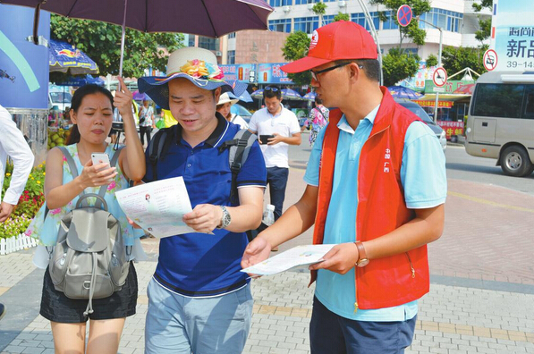 “十一”长假期间,全国首批“中国旅游志愿者”亮相。我市各景区、旅行社和酒店都设立了旅游志愿者服务岗,旅游志愿者们上岗为游客开展文明引导、游览讲解、质量监督、旅游咨询、应急救援等多项公益服务,受到游客的好评。