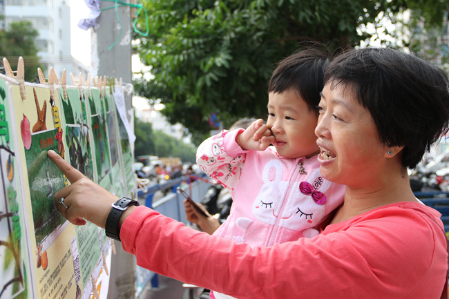 鸟友们专门跑到市场里,给商贩们宣传爱护鸟类。许多市民带着孩子来观看鸟类照片,并签名承诺“不打鸟不吃鸟”。