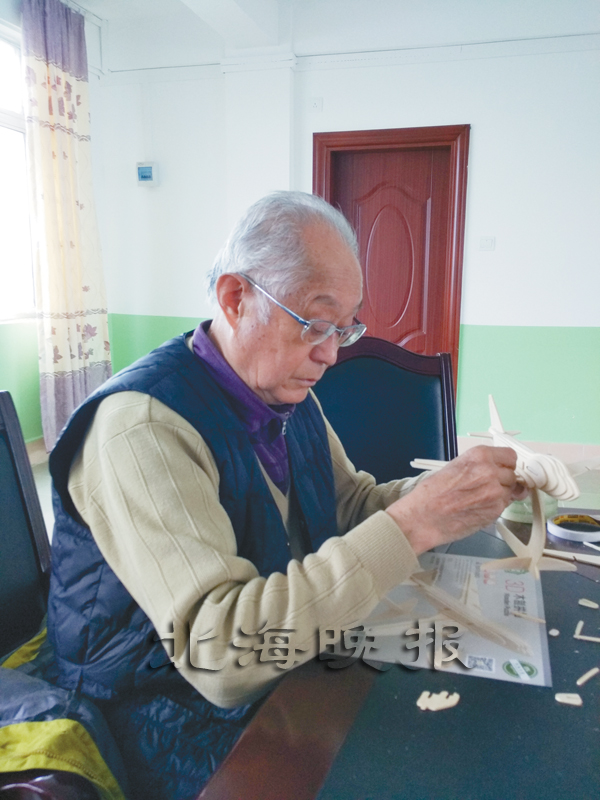 因为眼睛也不太好的问题,每次做手工,莫大爷只能小心翼翼地捧着材料,缓缓地进行着比赛。社工们看到此景,便帮助莫大爷组装起来?!坝惺焙蛭揖驮谙氚。钦娴南裎业暮⒆右谎?!”一点一滴温暖的举动,社工们感染着莫大爷。而莫大爷也用微笑,传递着自己的快乐。
