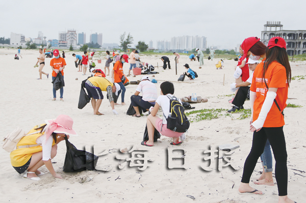 志愿者到海滩清理垃圾。 吴礼娜 摄