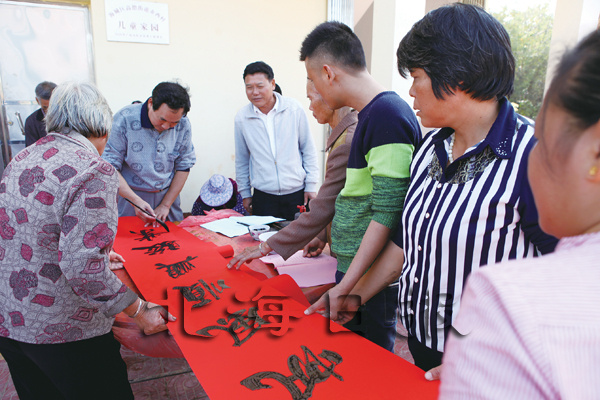 为深入推进精准扶贫工作,落实文化惠民活动,近日,海城区书画协会与该区文体局前往高德赤西村联合开展“文化扶贫·送春联”活动。