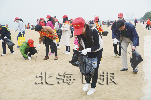 3月3日上午,北岸海滩上,活跃着一群“小红帽”。记者了解到,本次清洁海滩行动由海城区妇联组织,海城区辖区内各街道妇联、区直机关(战线)妇委会成员、“最美家庭”代表等300多名巾帼志愿者参加了本次清洁活动。