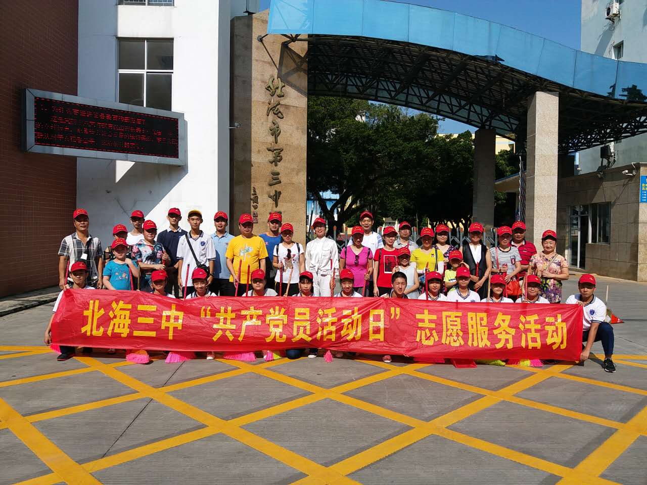 北海三中党总支坚持常态化、制度化开展“党员活动日”志愿服务活动,以实际行动参与创建文明城市。7月28日上午,三中党总支100多名党、团员志愿者冒着炎炎烈日,按时开展八月份的 “党员活动日”志愿服务活动。