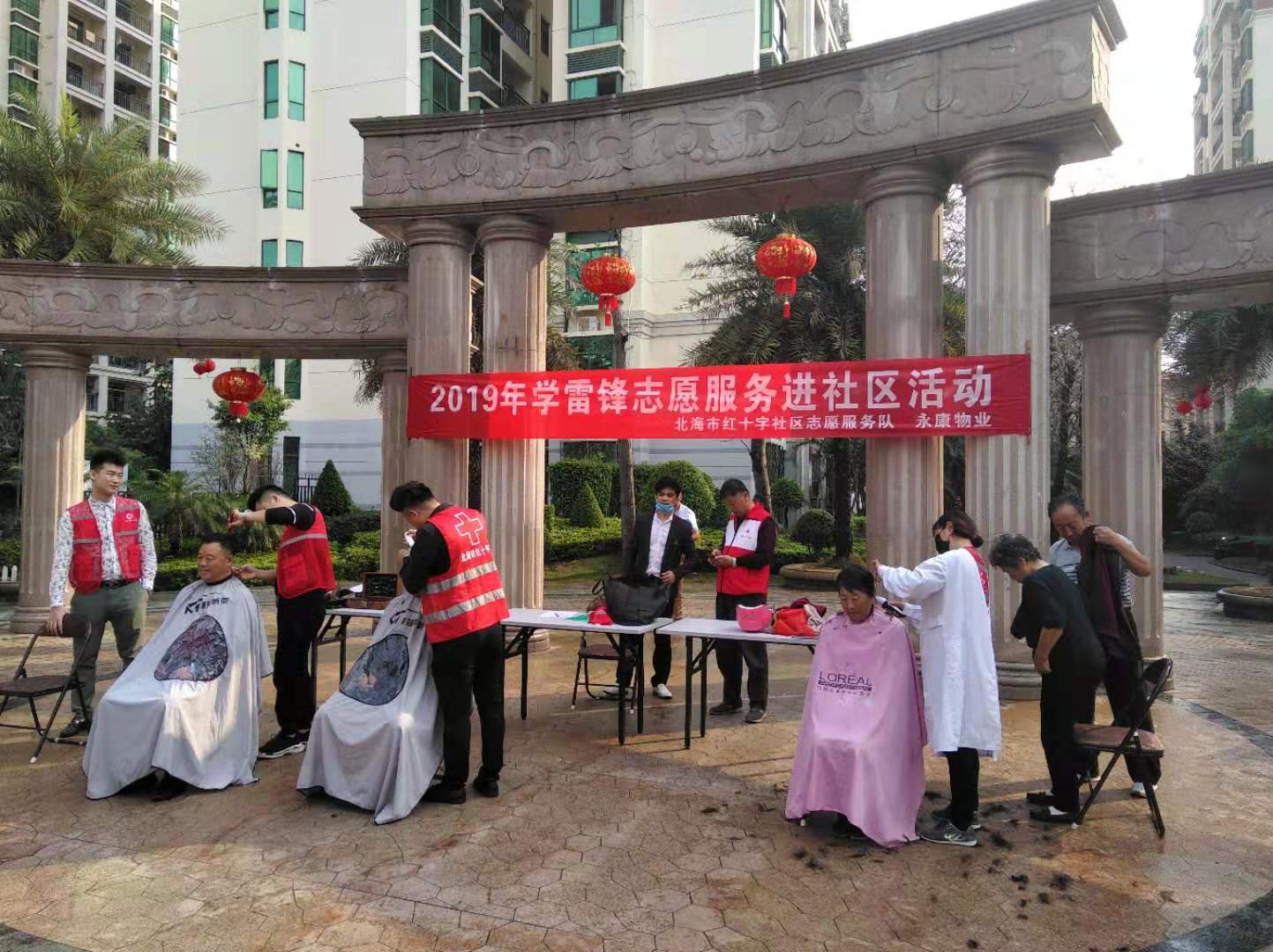 北海市红十字社区志愿服务队在“3·5”学雷锋日当天,积极弘扬雷锋精神、参与志愿服务,携手创建精神文明城市,共创平安家园。