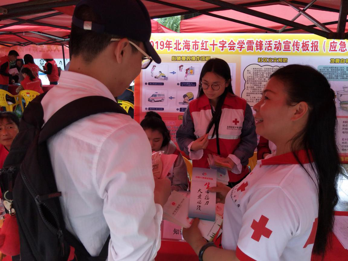 春雨过后,迎来第56个学雷锋日。当天,在众多开展活动的志愿服务队伍中,有一支众目俱瞻的队伍,那就是北海市红十字社区志愿服务队。这支队伍分为三组,分别在银滩救护站、香槟郡小区和北部湾广场开展不同类型的学雷锋志愿服务。