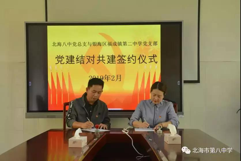 市八中与北海市银海区福成镇第二初级中学党支部开展“结对帮扶”续签共建活动,进一步加强校际间的交流与合作,积极开展对口帮扶工作。