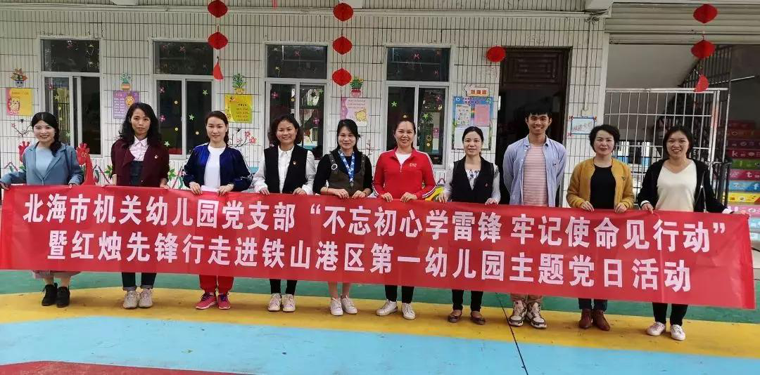 市机幼走进北海市铁山港区第一幼儿园,开展“不忘初心学雷锋牢记使命见行动”主题党日活动,向乡村保育员传播幼儿园卫生保健方法,更新乡村教师保教工作的观念。