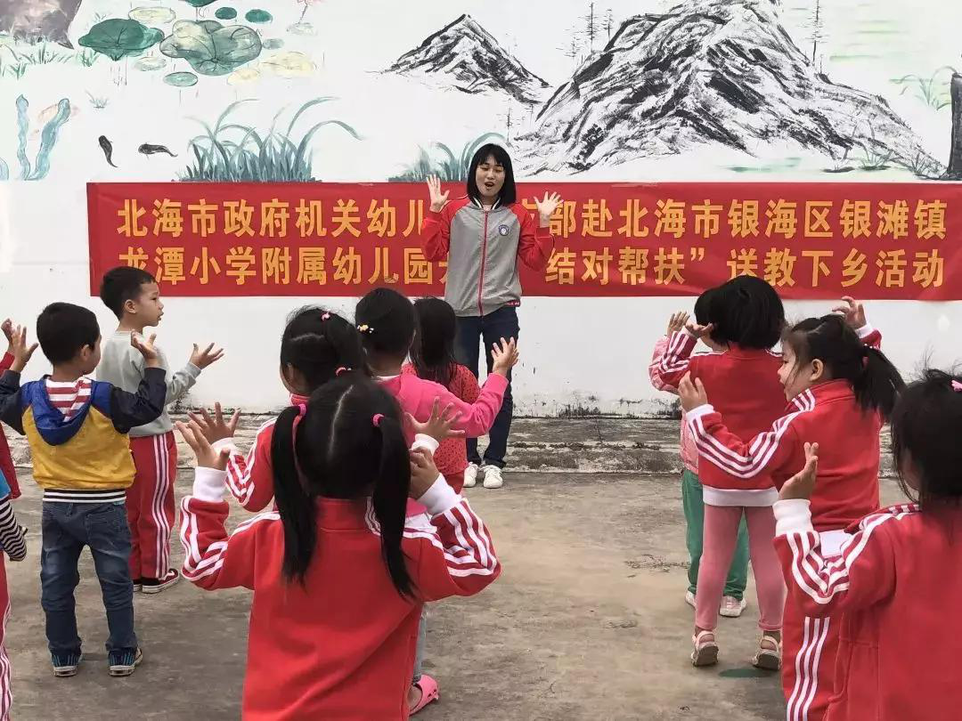 市政府机关幼8名党员老师及骨干教师到北海市银海区银滩镇龙潭小学附属幼儿园举行“结对帮扶”签约仪式暨开展结对帮扶送教下乡活动。
