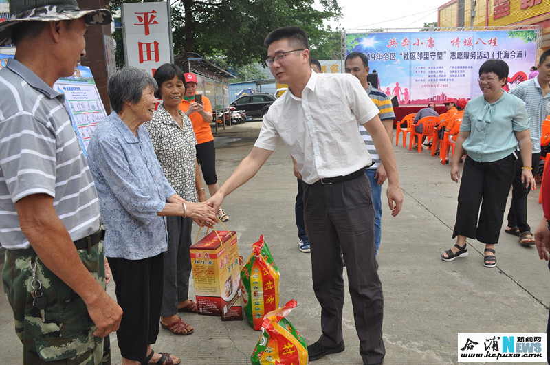 5月29日上午,由自治区文明办、广西志愿服务联合会主办,各市县区文明办共同承办的以“共奔小康·情暖八桂”为主题 “农村扶贫济困”“社区邻里守望”志愿服务系列活动在合浦县平田社区举行。自治区文明办三处处长陈坤、北海市文明办主任苏政、合浦县委宣传部和廉州镇等部门、乡镇有关领导及广西自治区志愿者、合浦部分民间志愿者和平田社区的居民参加活动并一起观看演出、慰问困难户。
