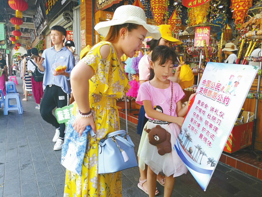 8月23日下午,北海老街游人如织,一群小志愿者化身“文明使者”,穿梭于游客间,热情地宣传“文明海城”,传播文明旅游共识,为我市创建全国文明城市贡献一份力量。