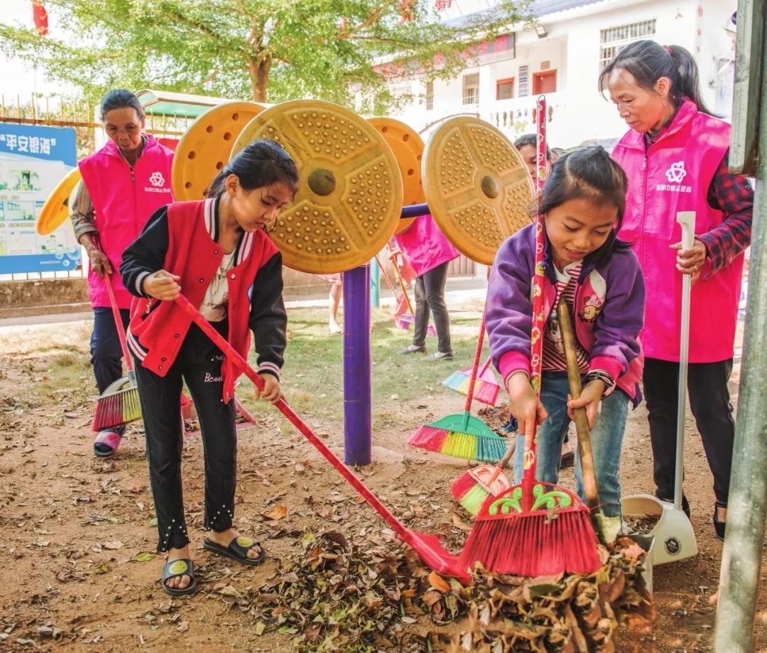 妇女儿童积极参与乡村大清洁行动。韩文旭 摄