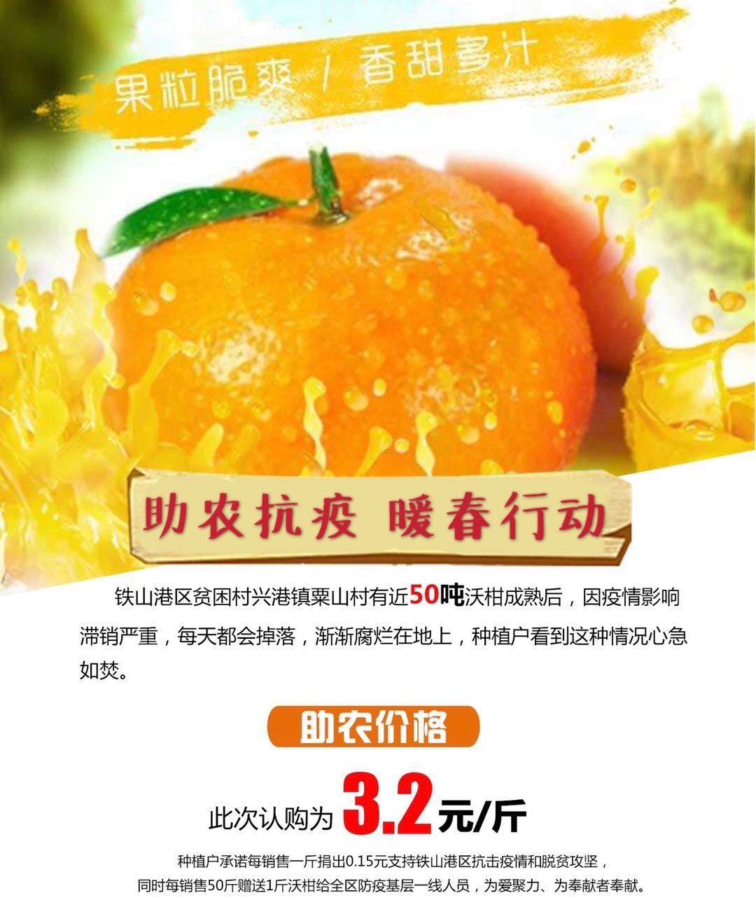 种植户承诺每销售一斤沃柑捐出0.15元支持关爱铁山港特困儿童、兴港镇粟山村脱贫攻坚等,同时每销售50斤赠送1斤沃柑给全区防疫基层一线工作人员,为爱奉献,为奉献者奉献!