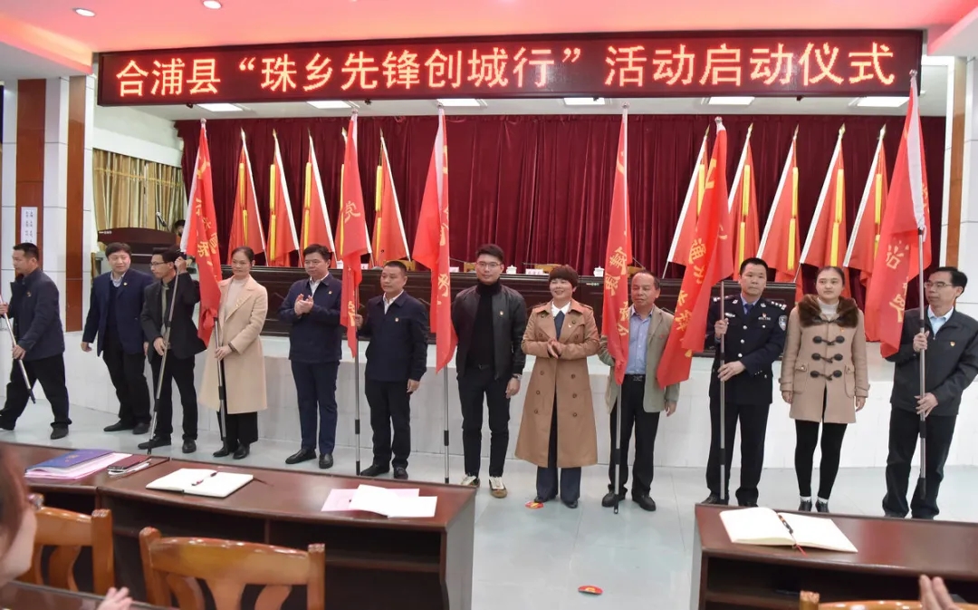 启动仪式上,王川宣布“珠乡先锋创城行”活动正式启动,并与韩德金、何来、唐艺嘉等县领导为八大“党员服务先锋队”授旗;县公安局代表“交通劝导党员服务先锋队”作表态发言;党员领导干部共同签名承诺。