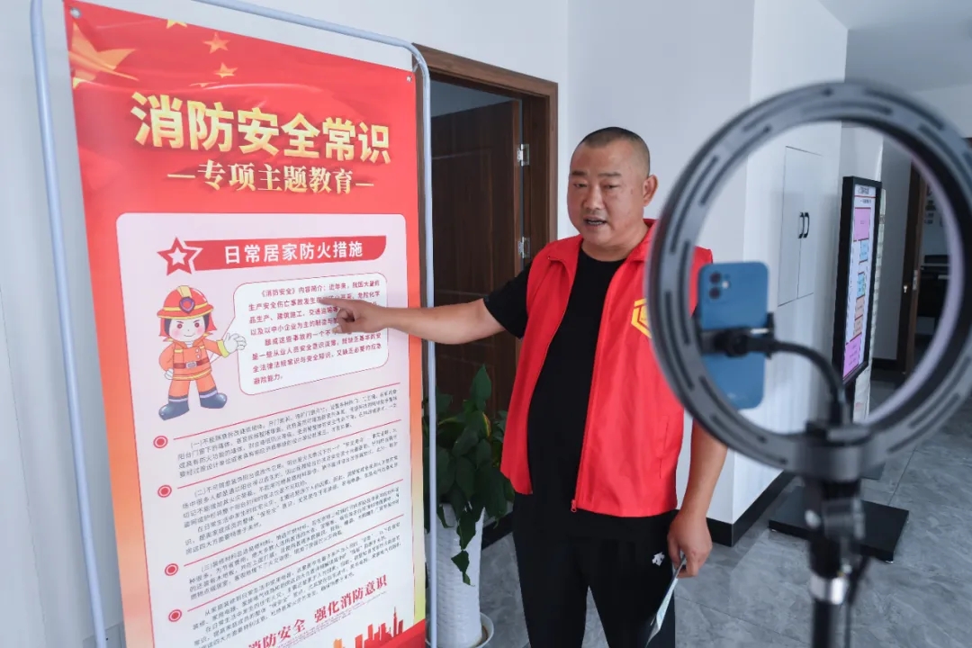 ▲6月22日,杭州市临安区锦南街道锦溪社区党员志愿者进行“安全生产月”主题宣讲并录制视频,准备上传到“e智慧”平台。新华社记者 徐昱 摄