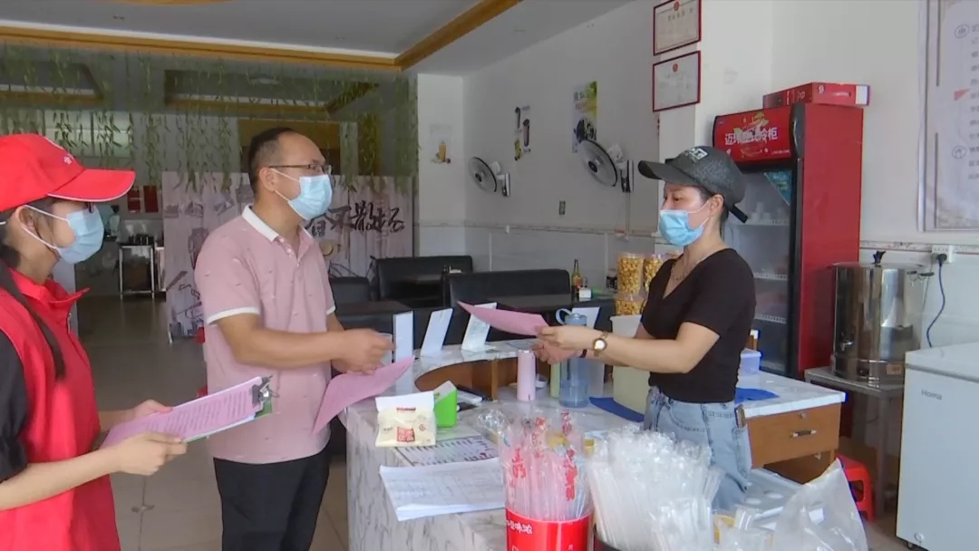 在石康镇康乐社区,网格员傅汝远与志愿者正手拿笔记本和宣传单,查看辖区群众登记接种疫苗情况,并对居民提出的疑问一一给予解答。