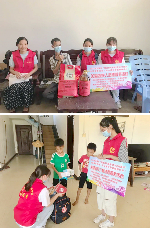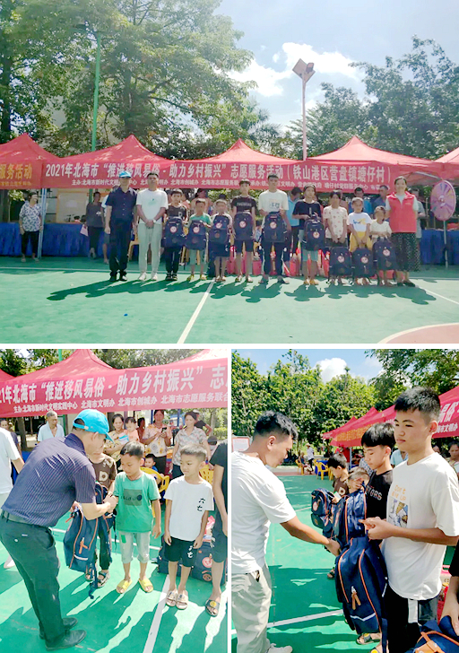 活动开始,铁山港区文明办、营盘镇政府的同志为留守儿童、家庭困难的青少年赠送“护身铠”,以及给孤寡老人和残障人士等困难群体送上慰问品。
