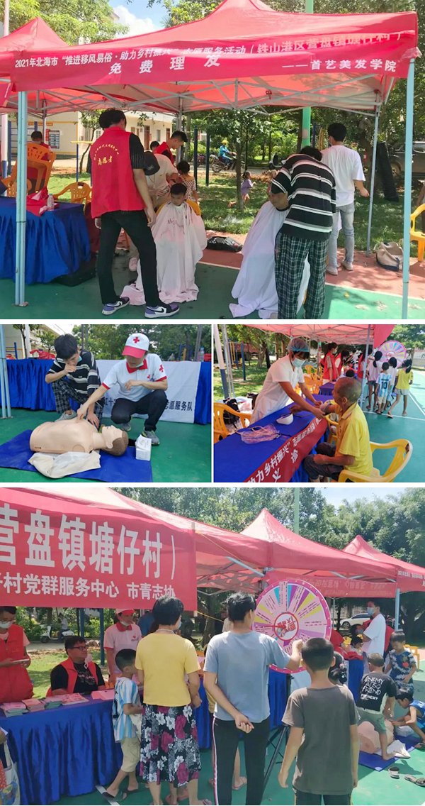 8月25日上午,由北海市新时代文明实践中心、北海市文明办、北海市创城办、北海市志愿服务联合会主办,铁山港区文明办、营盘镇政府、塘仔村党群服务中心、北海市青年志愿者协会承办的2021年北海市“推进移风易俗?助力乡村振兴”志愿服务活动在铁山港区营盘镇塘仔村开展,活动志愿服务队的志愿者为村民提供农业科普、健康诊疗、免费理发、应急救护现场教学等志愿服务活动。