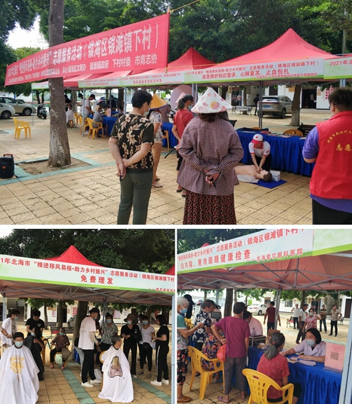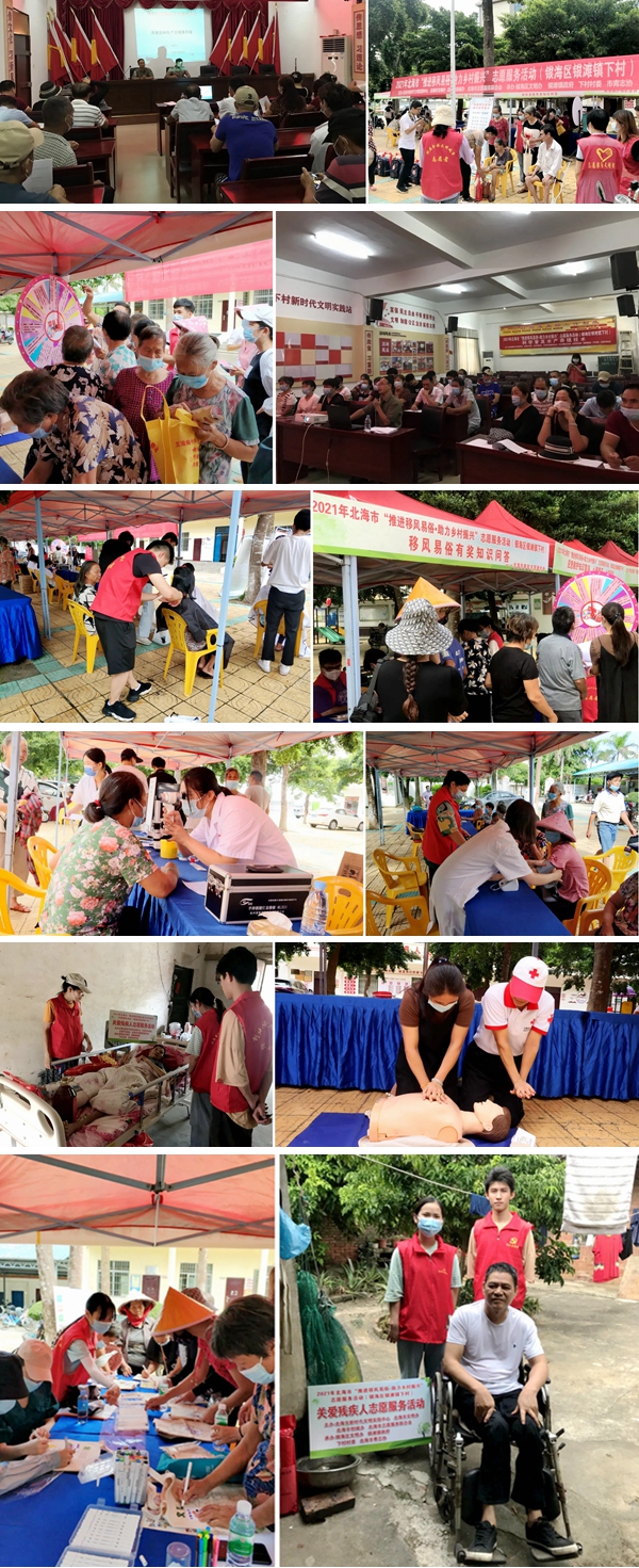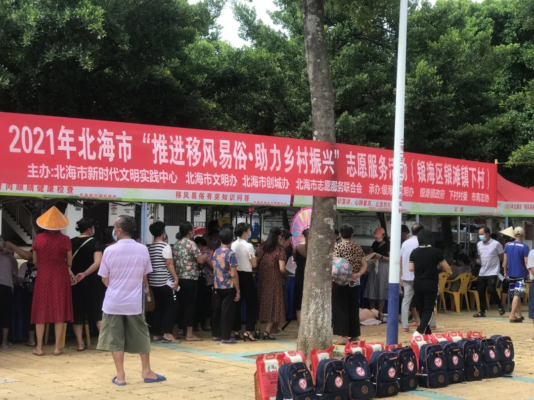推动移风易俗、破除陈规陋习是当前精神文明建设的重要任务,也是推动乡村振兴文明新风工作的重要内容。9月1日上午,由北海市新时代文明实践中心、北海市文明办、北海市创城办、北海市志愿服务联合会主办,银海区文明办、银滩镇政府、下村村委、北海市青年志愿者协会承办的2021年北海市“推进移风易俗?助力乡村振兴”志愿服务活动走进银海区银滩镇下村,活动组织9个志愿服务队为村民提供水产养殖科普、健康诊疗、免费理发、应急救护现场教学等志愿服务活动,近百名村民参加活动。