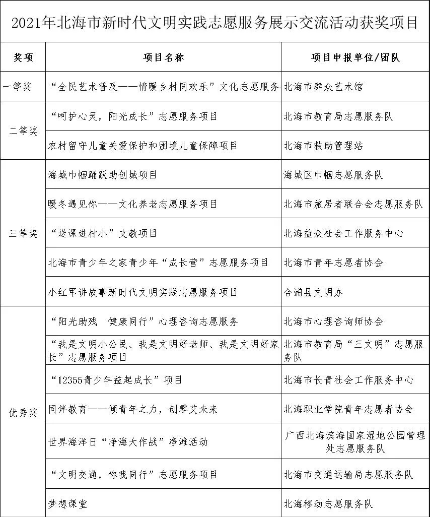 本次活动由市委宣传部主办,北海市精神文明建设委员会办公室、北海市民政局、共青团北海市委员会、北海市妇女联合会、北海市志愿服务会联合承办,北海市青年志愿者协会协办。