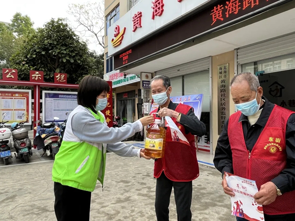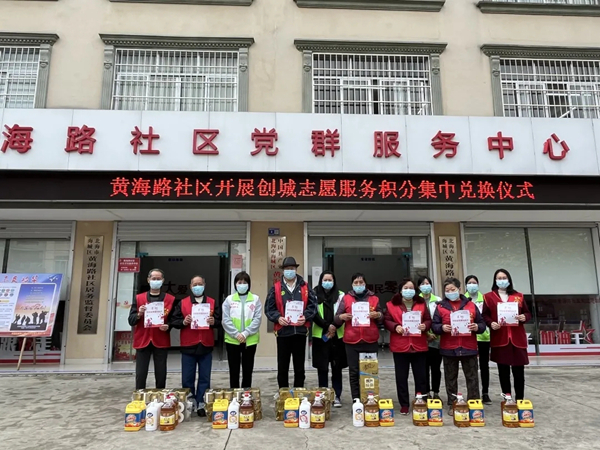 2022年1月20日上午,黄海路社区开展创城志愿服务积分集中兑换仪式。自创城志愿服务积分兑换机制启动以来,社区一直号召党员群众积极参与志愿服务,助力创城。