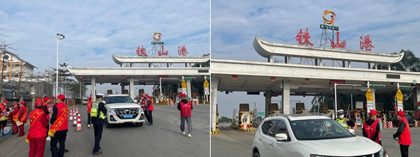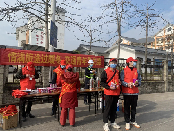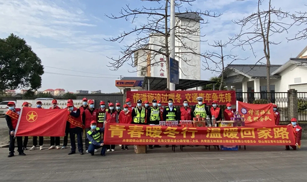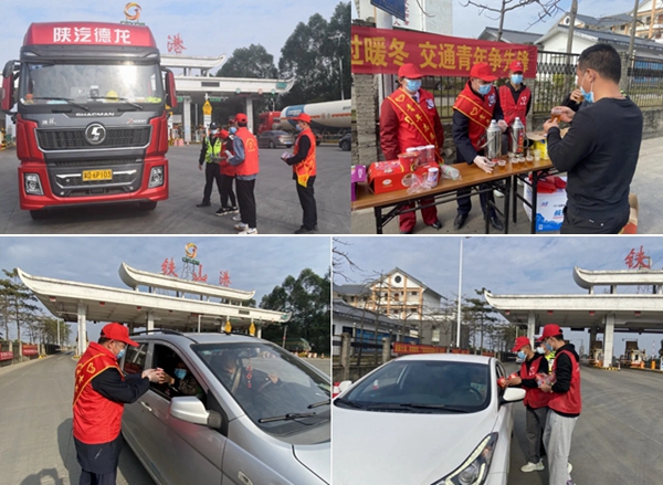 1月20日,铁山港区团委联合北海市公安局交警支队高速公路管理二大队、玉铁高速公司团委、北港新材料公司团委及铁山港区青年志愿者协会组织20余名志愿者在铁山港主线收费站开展“青春暖冬行 温暖回家路”志愿服务活动。