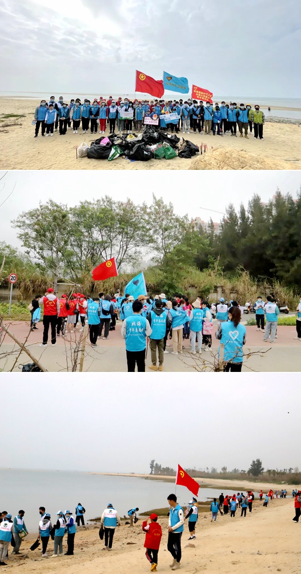 近期,为贯彻落实自治区关于生态文明建设的决策部署,全市启动了为期半年的海洋和海滩垃圾集中整治,团市委也积极组织发动青年志愿者加入到集中整治活动中,为维护海洋、海滩环境质量,助力建设令人向往的品质之城、魅力之城贡献青春力量。本次志愿服务活动共发动青年志愿者90余名。他们身着志愿者马甲,戴着环保手套,手拿清洁工具、手提垃圾袋等,排好阵型,沿着海岸线对三千海沙滩上的啤酒瓶、烟头、塑料制品、废旧渔网、漂流废弃物等垃圾进行地毯式搜索并清理。经过2个小时的努力,志愿者共清理海滩1.5千米,清理各类垃圾共150公斤。