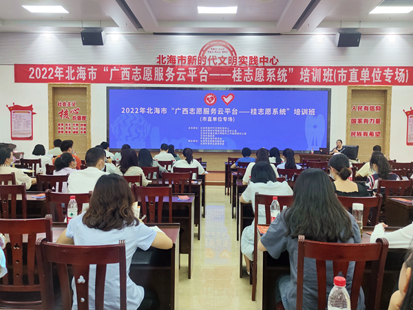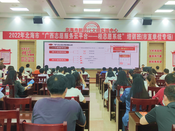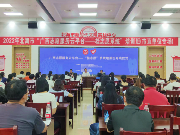 4月25日下午,由北海市新时代文明实践中心、北海市文明办、北海市创城办、北海市民政局、共青团北海市委联合主办,北海市志愿服务联合会、北海市青年志愿者协会承办的2022年北海市“广西志愿服务云平台——桂志愿系统”培训班在北海市新时代文明时实践中心正式开班,100多个市直单位志愿服务队系统管理员参加了开班仪式和首场培训。市文明办主任、市创城办副主任苏政参加开班仪式并讲话。