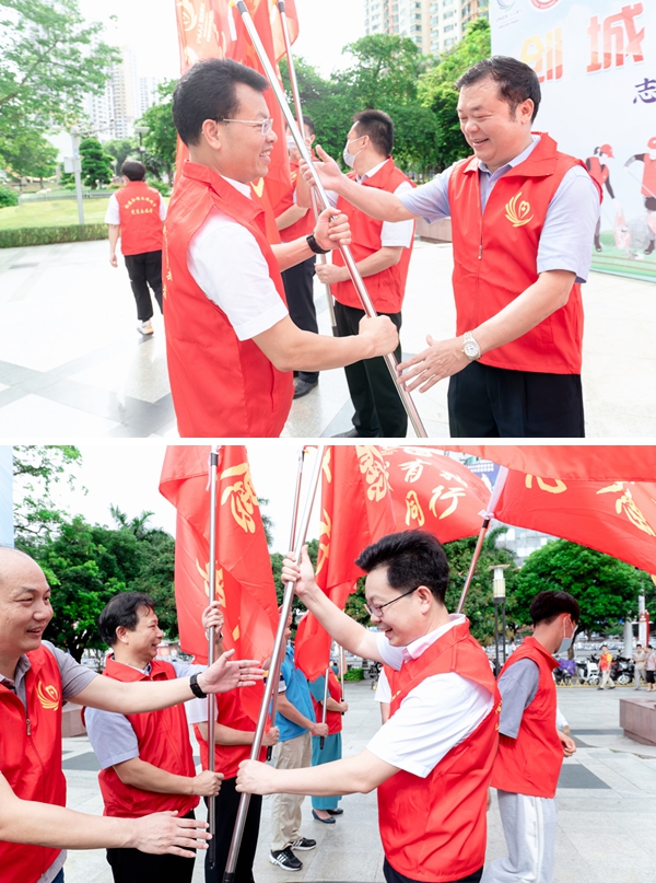 黄卫平同志、刘伯贤同志为各志愿服务行动牵头单位授旗。