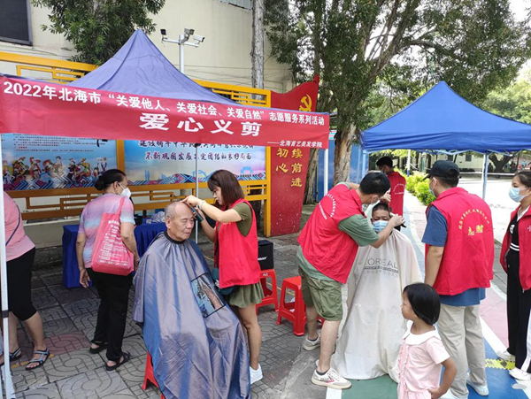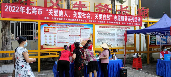 ▲2022年北海市“关爱他人、关爱社会、关爱自然”系列志愿服务活动在侨南社区侨港文体公园开展