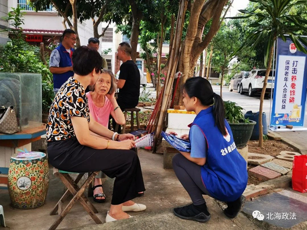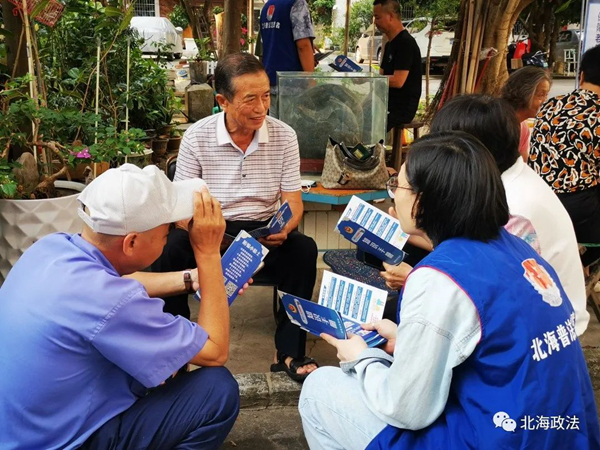 针对目前社会上诈骗手段千变万化、部分老年人防范意识不强的情况,9月20日,北海市司法局组织普法志愿者深入住宅小区开展防范养老诈骗宣传活动,全力保障老年群体财产安全。