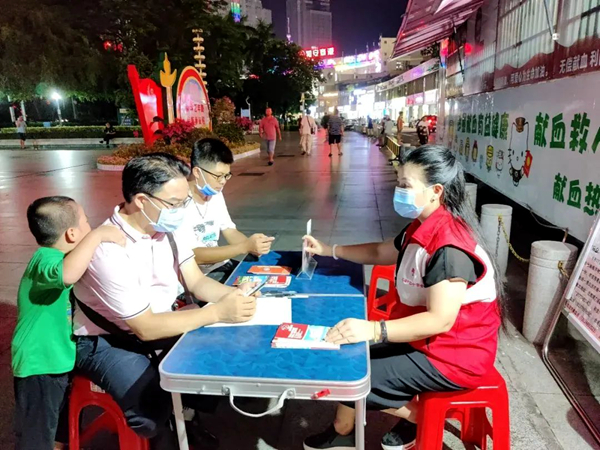 ▲市红十字社区志愿服务队队员坚持定期在献血车开展宣传无偿献血、造血干细胞捐献知识。