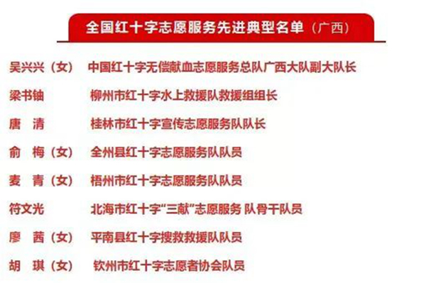 近日,中国红十字会总会印发全国红十字志愿服务先进典型名单的通知,北海市红十字“三献”志愿服务队骨干队员符文光赫然在榜,成为广西八个先进典型中的其中一员。