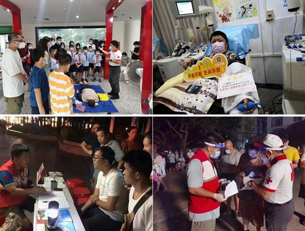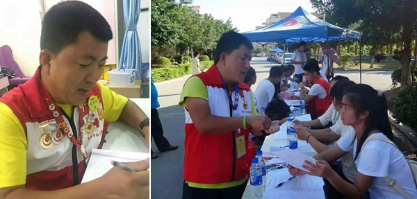 “谢谢组织把这份荣誉给了我,我只是红十字“三献”志愿服务队中的一名志愿者,做了一些力所能及的工作而已。今后我要更加努力,带动更多市民加入到无偿献血和造血干细胞捐献工作中?!痹诘弥约夯竦萌焓种驹阜裣冉湫秃?,符文光激动地说道。情绪平静下来后,回忆起这些年经历的志愿服务,符文光历历在目,2002年12月20日,20岁出头的符文光踊跃报名参加了单位组织的献血活动,完成了人生第一次200毫升无偿献血。自那次之后,符文光义无反顾地踏上了挽救生命的献血征途,20年来从未间断。2008年,符文光光荣地成为了一名北海市红十字志愿者。符文光除了定时献血,还积极参与无偿献血的发动宣传。他知道靠个人或者少数人的力量是远远不够的,只有更多志愿者加入,才能保证血库血源充足。他积极投身到无偿献血志愿服务中,利用周末时间走街串巷积极鼓励动员人们去献血。在他的感召下,已经有100多人加入到机采血小板队伍中,1000多人参与了全血献血,无偿献血志愿者的队伍因他的努力而更加壮大。参加志愿服务时,符文光经常穿着红十字志愿者马甲,上面挂满了各式各样的纪念徽章?!罢馐侵泄焓肿芑岚浞⒌娜羌痘照?,这是广西红十字会颁发的志愿者之星……”这个画面,让人直接联想到挂满军功章的军人。他们,都是军人,在不同的阵地上响应祖国和人民的召唤。2008年8月,符文光加入了中华骨髓库,成为百万志愿者中的一员。他说只要有患者配型合适,他就会毫不犹豫地捐献自己的造血干细胞。2009年9月28日,符文光加入了成分血的捐献行列者中,从此坚持每月捐献两次,时间一到,就会主动去血站奉献上自己的一份爱心。20年的坚持,符文光累计无偿献血109次,献血量超过42800毫升。其中全血17次,机采血小板92次。几乎每隔两周都能在北海市中心血站看到他的身影,目前累计参加志愿服务时长超6000小时。符文光在红十字三献志愿服务队、红十字社区志愿服务队、红十字赈济救援队、红十字应急救护师资志愿服务队、北海市新时代文明实践无偿献血志愿服务队等队伍中发挥了骨干作用。每一种身份,都是一份责任,一份使命。有那么多人的身上流淌着自己的血,符文光逐渐感觉到自己的心灵得到了升华。荣获2016-2017年度全区优秀红十字志愿者荣誉称号;2018年荣获2016-2017年度全国无偿献血奉献奖金奖;2021年荣获第六届北海市道德模范。在获得众多荣誉后,符文光依然保持着初心和本色。