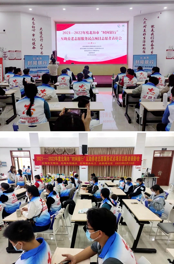 2月19日,由北海市文明办、北海市创城办主办,北海益众社会工作服务中心承办的2021-2022年度“时间银行”互助养老志愿服务项目志愿者表彰会在海城区北部湾社区举办,45位志愿者获表彰。