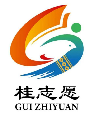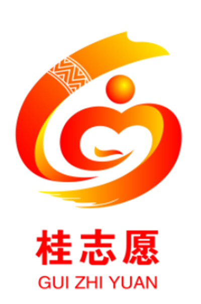 Logo以“桂志愿”拼音首写字母“GZY”为主体构型,以抽象汉字“志”为正面隐藏构型,“愿”字为背面隐藏构型,融入广西特色元素绣球、山水,组合融入志愿元素和平鸽、志愿者。