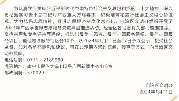 2023年广西学雷锋志愿服务先进典型名单公示啦!