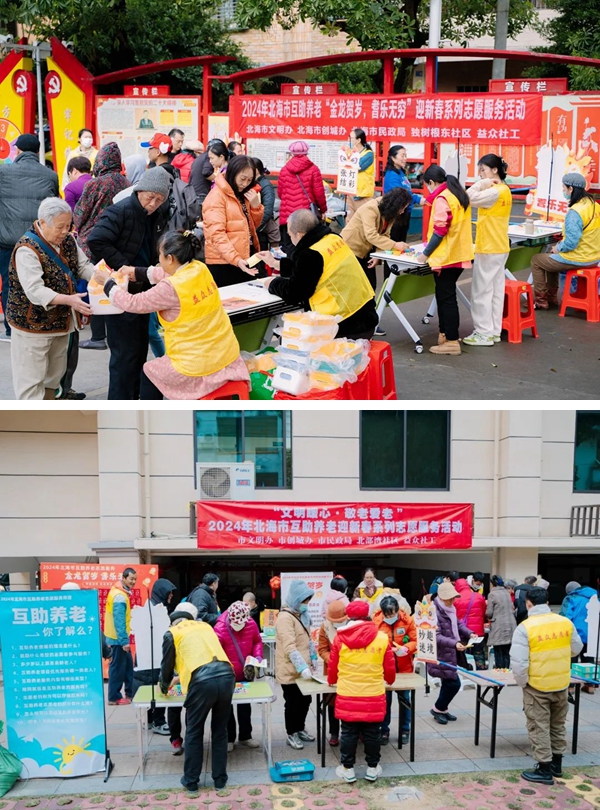 随着农历龙年春节临近,年味渐浓,为了让老人体会喜庆、愉快的节日氛围,1月18日到2月1日,由北海市文明办、北海市创城办、北海市民政局主办,北海益众社工承办的2024年北海市“文明暖心 敬老爱老”互助养老迎新春系列志愿服务活动陆续在黄海路社区、贵兴社区、北部湾社区、独树根东社区开展。系列活动吸引了四个社区400多名老人的热情参与。