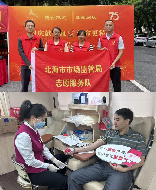 9月24日上午,北海市委市直机关工委联合北海市献血办、北海市卫健委、北海市红十字会在北海市政府大院开展“我为祖国献热血” 无偿献血志愿服务活动,以实际行动献礼庆祝中华人民共和国成立75周年,并引领社会各界积极参与和支持无偿献血公益事业。