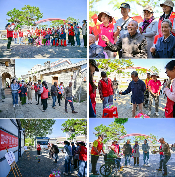 为了拉近老人与党员志愿者的距离,社工安排了有趣的互动游戏,欢乐簸箕球、协力乒乓球、快乐铲铲铲、唱响红歌等,大家一起齐心协力,笑声不断。接着,党员志愿者和老人们一对一结伴,一起走进高德古镇,社工给大家介绍着这里的故事,一起走进岁月斑驳的历史,探访高德古镇的趣事,聆听红色革命故事,感悟高德的革命前辈不怕牺牲、前仆后继的革命精神。