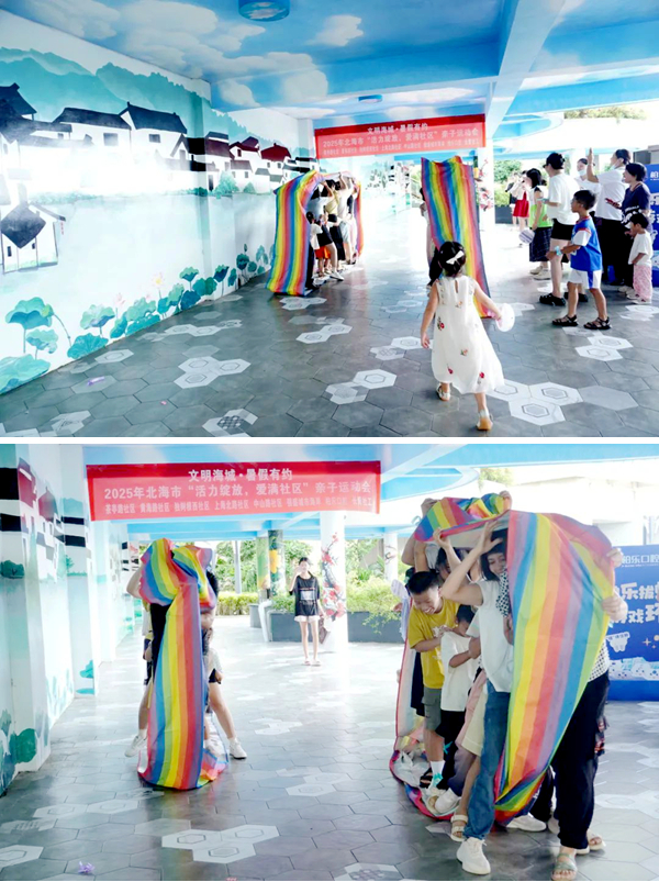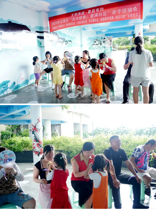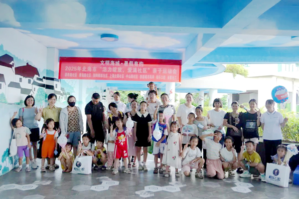 为丰富辖区儿童的暑期生活,倡导健康快乐的运动理念,充分发挥家庭教育作用,促进亲子关系发展,8月16日上午,茶亭路社区、黄海路社区、独树根西社区、上海北路社区、中山路社区联合强盛城市海岸、柏乐口腔、北海市长青社会工作服务中心,在强盛城市海岸举办“文明海城·暑假有约”2025年北海市“活力绽放,爱满社区”亲子运动会,16组亲子家庭参加。