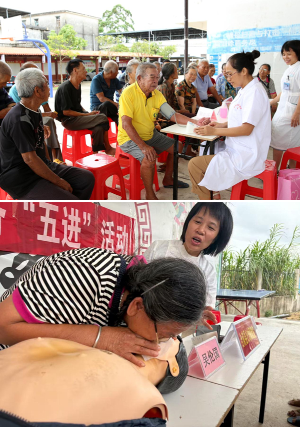 活动伊始,县妇幼保健院医护人员为老人义诊,详细询问用药并建档,现场示范海姆立克急救法、人工呼吸等实用技巧,提升老人自救互救能力。