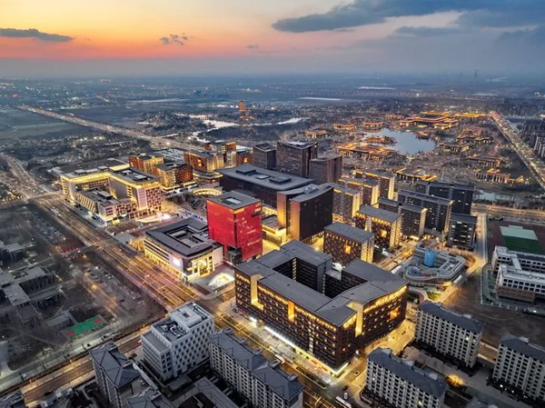 安商务服务中心夜景(2025年3月15日摄,无人机照片)。来源:新华社