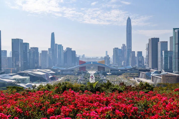 从深圳莲花山山顶俯瞰城市中轴线(2025年1月29日摄)。来源:新华社