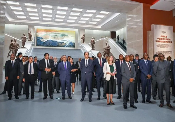 驻华外交官来到中国人民抗日战争纪念馆,参观纪念中国人民抗日战争暨世界反法西斯战争胜利80周年主题展览《为了民族解放与世界和平》(2025年7月17日摄)。来源:新华社