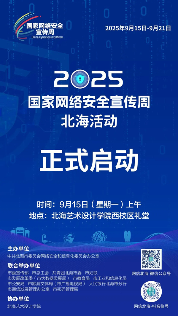 简介:市委网信办联合市委宣传部、市总工会、共青团北海市委、市妇联、市发展改革委(市大数据发展局)、市教育局、市工业和信息化局、市公安局、市旅游文体局(市广播电视局)、人民银行北海市分行、市通信发展管理办公室、市密码管理局举行2025年国家网络安全宣传周北?;疃舳鞘健?/font>