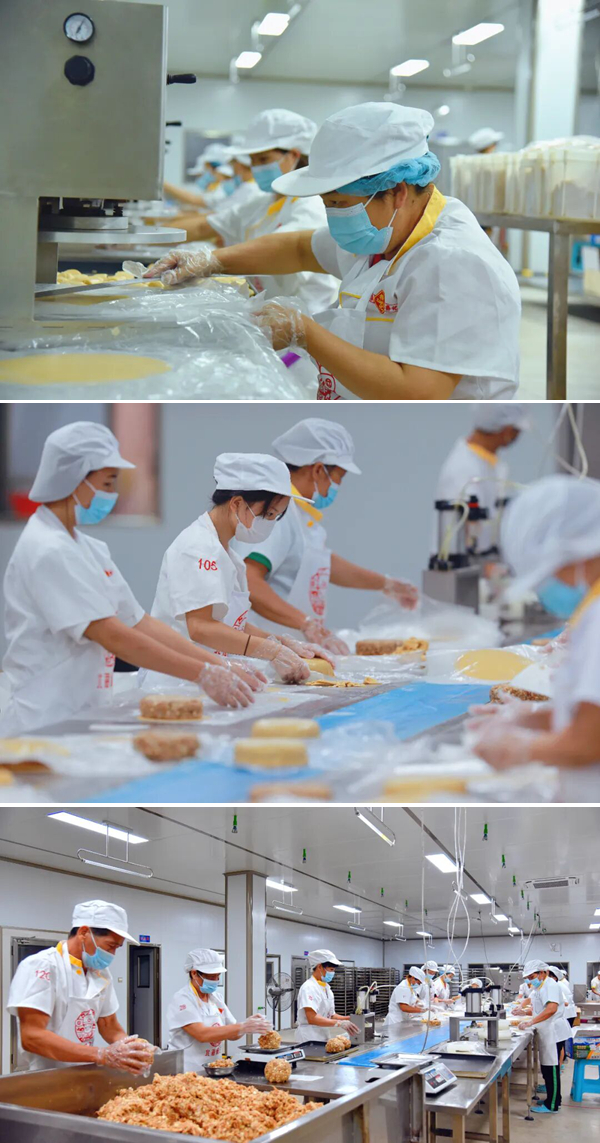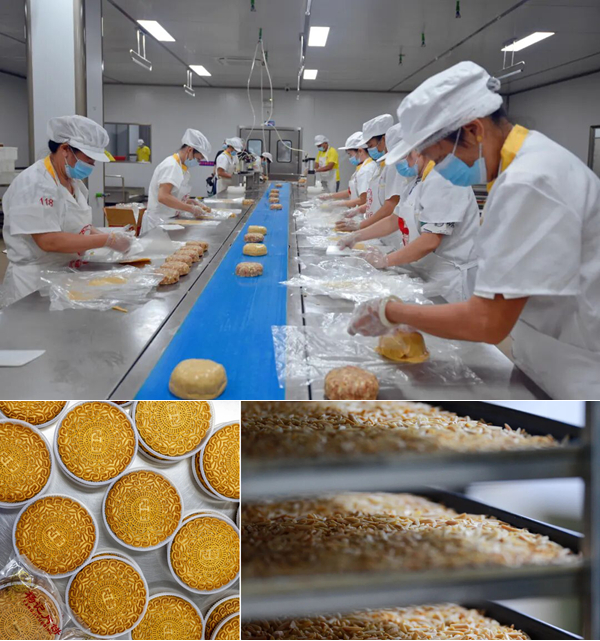 中秋佳节脚步渐近,月饼消费进入旺季。位于银海区福成镇的杨记食品有限公司生产车间一派繁忙景象,只见工人们手指一捏一包一揉,不到十秒就完成一个月饼的包制,再经过机械冲压成型、加热烘烤、冷却包装,就得到外皮酥脆、馅料鲜美的月饼。