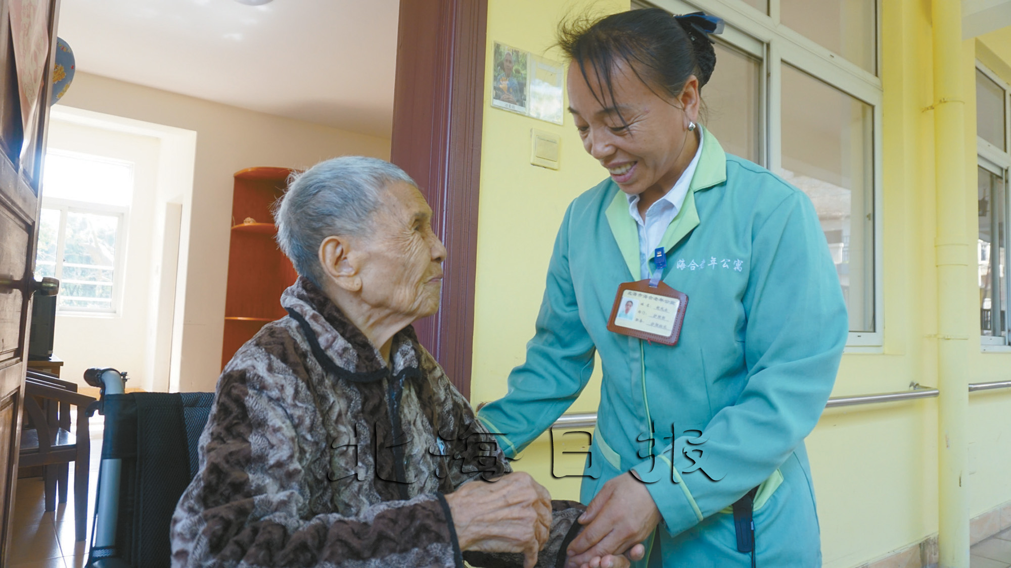记者在采访中看到,胡凤云一个上午几乎没停下来过,就连午饭后的休息时间也惦记着老人。她会到各个房间巡查,看看老人有没有盖好被子,摸摸老人的手暖不暖,询问老人有什么需求?!耙灰颇鋈プ咦撸俊焙镌埔槐呶?,一边蹲下身子为一位坐在轮椅上的老人扣好衣服上的纽扣。她到过的每一个房间,总是不时传出她和老人们爽朗的笑声,浓浓的暖意弥漫在初春的午后。