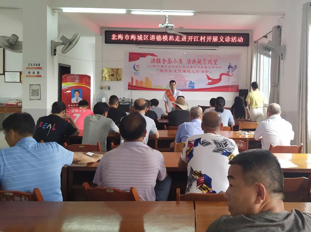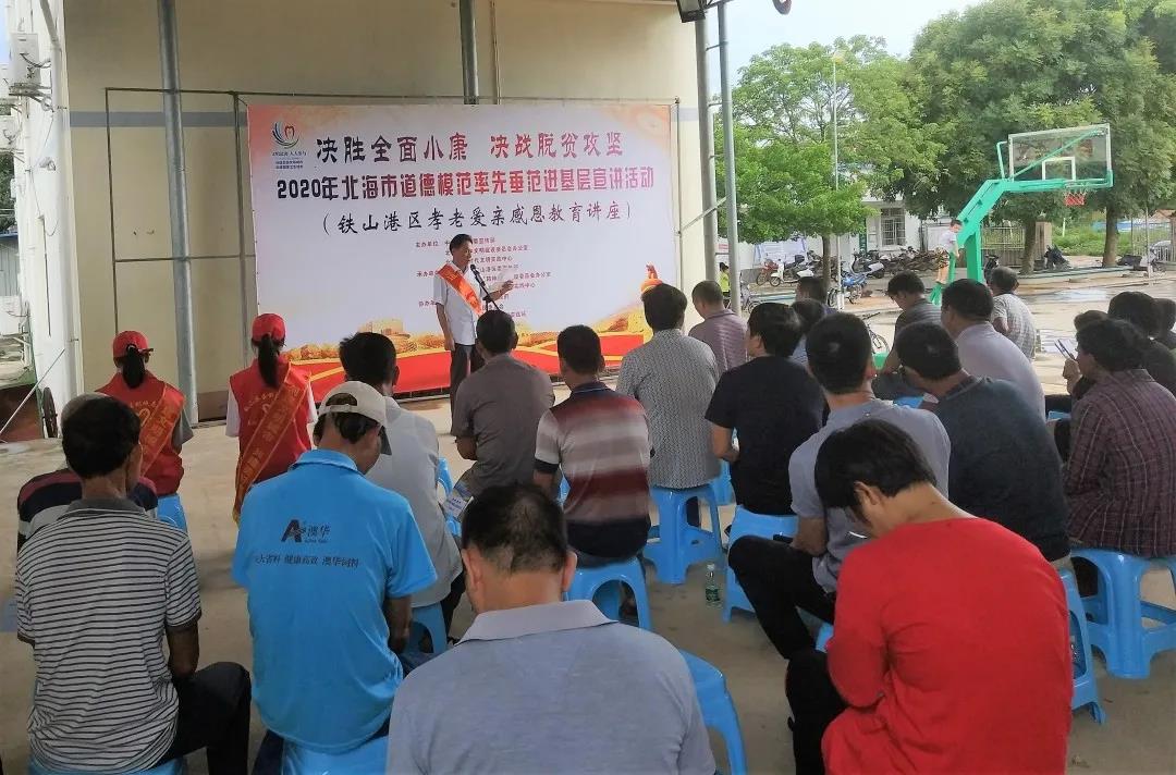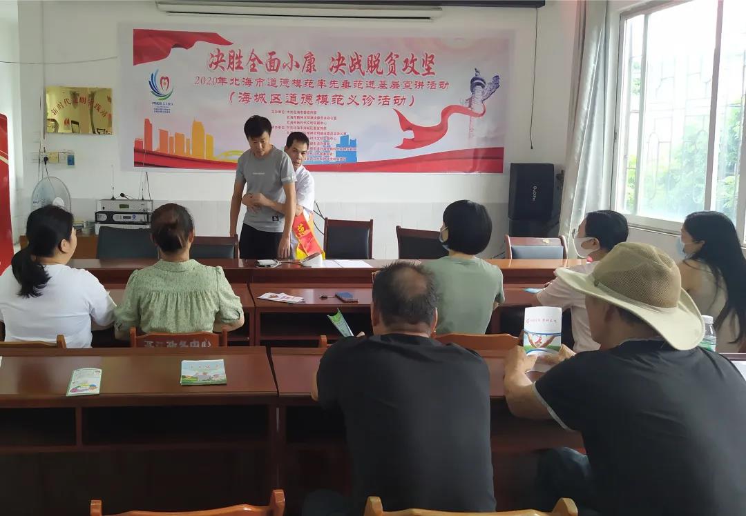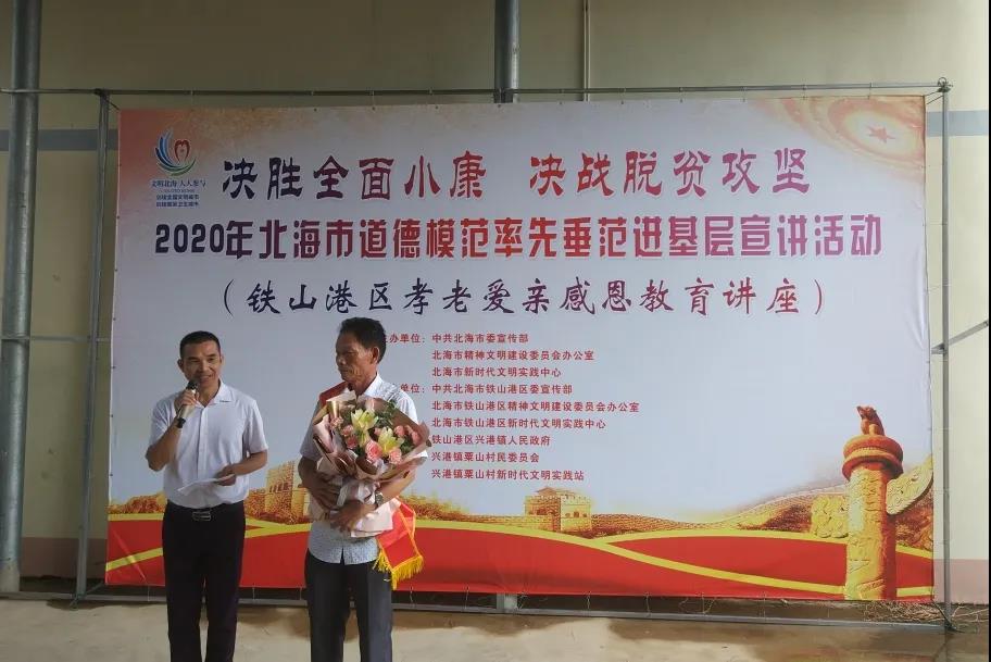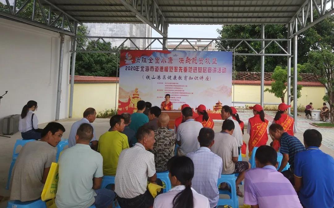 8月14日,由中共北海市委宣传部、市文明办、市新时代文明实践中心主办的“决胜全面小康 决战脱贫攻坚——2020年北海市道德模范率先垂范进基层宣讲活动”分别在海城区高德街道开江村、铁山港区兴港镇粟山村、铁山港区南康镇雷田村举行,活动组织我市道德模范走进乡村,学习宣传模范事迹,助力决胜全面小康,决战脱贫攻坚。